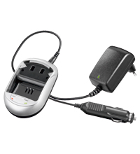 Kompaktes Ladegerät zum Laden von Digitalkamera und Camcorder Li-Ion Akkus. Der Ladestatus wird während des Ladevorgangs durch eine Kontroll LED angezeigt. Im Lieferumfang befindet sich sowohl ein Netzteil mit 110V bis 240V als auch ein 12V Ladekabel für den Zigarettenanzünder.